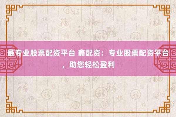 鑫配资,作为一家专业的股票配资平台,始终以安全、便捷、高效的服务为投资者保驾护航。选择鑫配资,就是选择专业,选择信赖,选择成功。让我们携手共进,在股票市场中乘风破浪,实现财富增值!