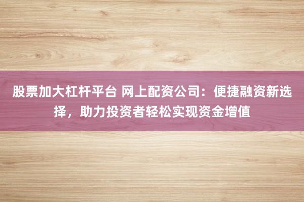 股票加大杠杆平台 网上配资公司:便捷融资新选择,助力投资者轻松实现资金增值